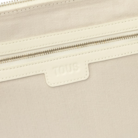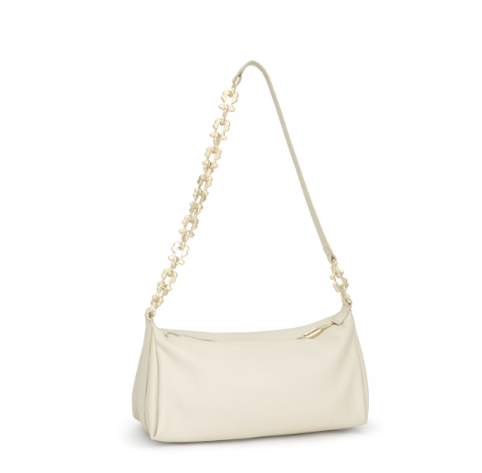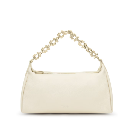 Bolso bandolera mediana chain TOUS Fold de piel vacuna con certificación LWG en color beige. Cierre de cremallera. Bolsillo interior con cremallera. Asa bandolera ajustable.