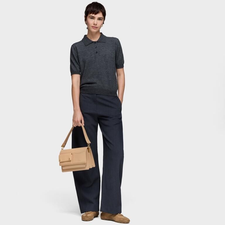 Bolso bandolera mediano Audree TOUS Pockets de poliuretano en color arena. Incorpora una solapa y cierre con dos botones magnéticos. Cuenta con dos compartimentos separados por uno con cremallera y un bolsillo abierto en la parte delantera. Asa de hombro fija y asa bandolera ajustable y desmontable. Medidas (alto x ancho x fondo): 19 x 25 x 12 cm