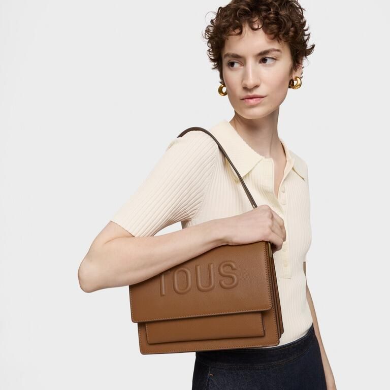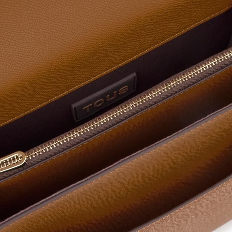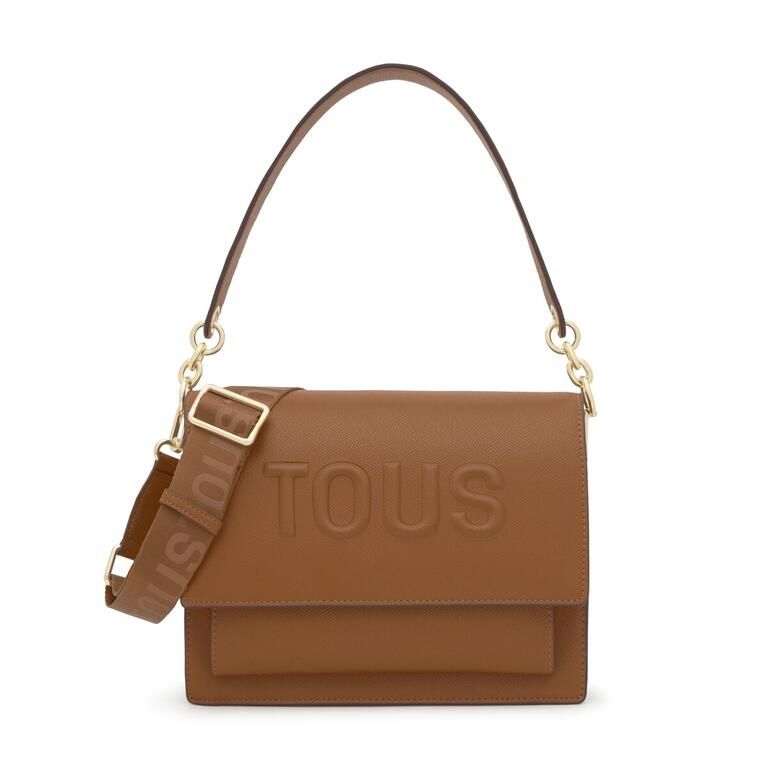 Bolso bandolera mediano Audree TOUS Brenda de poliuretano en color camel. Incorpora una solapa y cierre con dos botones magnéticos. Cuenta con dos compartimentos separados por uno con cremallera y un bolsillo abierto en la parte delantera. Asa de hombro fija y asa bandolera ajustable y desmontable. Medidas (alto x ancho x fondo): 19 x 25 x 11,5 cm