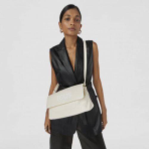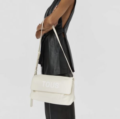 Bolso bandolera mediano TOUS Maya de piel sintética en color beige. Cierre de solapa con botón magnético. Bolso con dos compartimentos interiores separados por un bolsillo con cremallera. Bolsillo interior abierto. Asa bandolera ajustable.