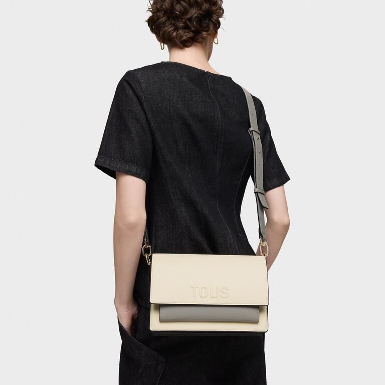 Bandolera mediana beige y gris TOUS Audree Saffiano 2002202601