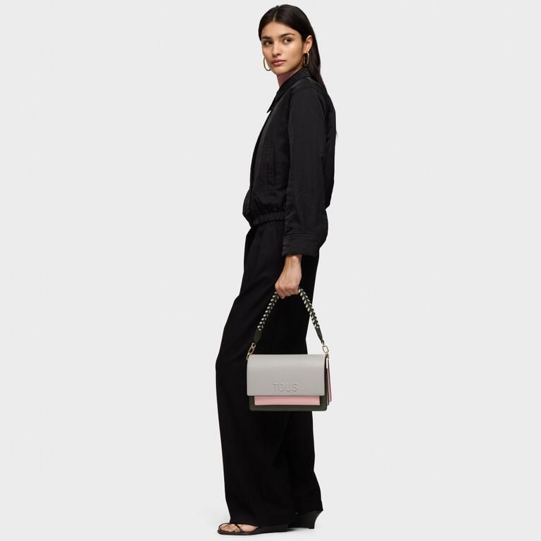 Bandolera mediana gris y rosa TOUS Audree Saffiano 2002202647