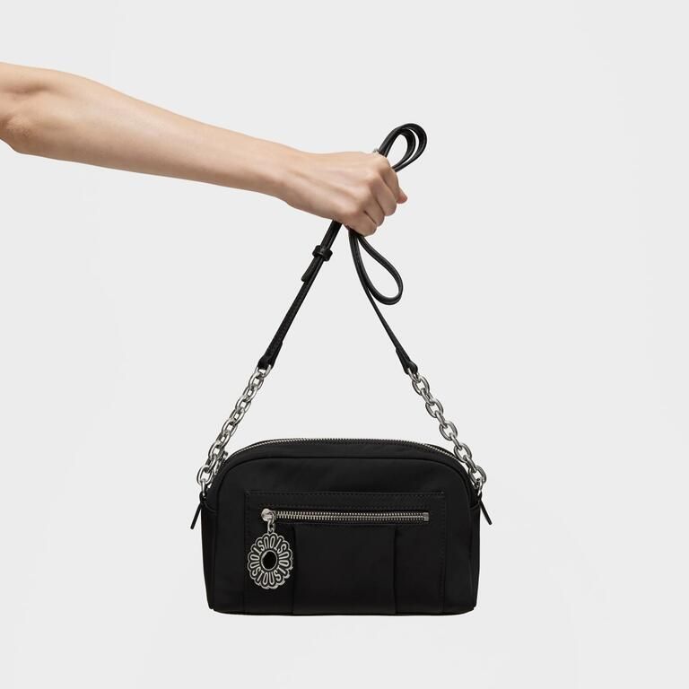 Bolso bandolera mediana TOUS Jane Soft de nilón reciclado con detalles de piel sintética en color negro. Cierre de cremallera. Bolsillo interior abierto. Asa bandolera ajustable.