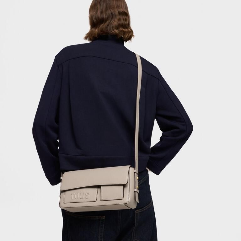 Bolso bandolera mediano TOUS Back to basics de poliuretano en color topo. Cierre de solapa con botón magnético. Bolsillo interior abierto. Dos bolsillos exteriores abiertos. Asa bandolera ajustable. Medidas (alto x ancho x fondo): 14 x 29 x 9 cm.