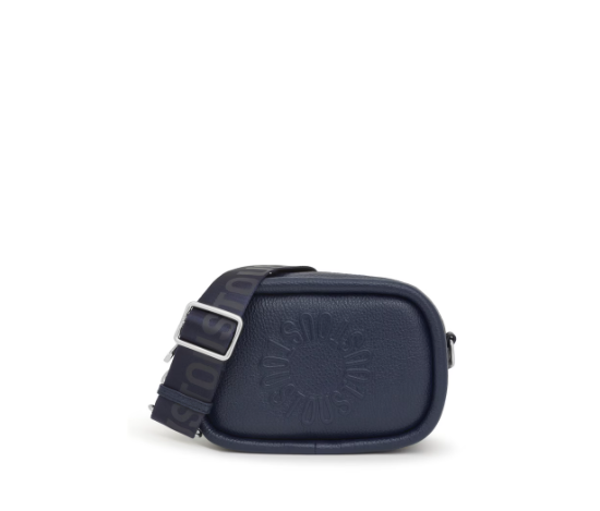 Bolso bandolera Reporter TOUS Miranda de piel vacuna con certificación LWG en color azul marino. Cierre de cremallera. Asa bandolera ajustable y desmontable.