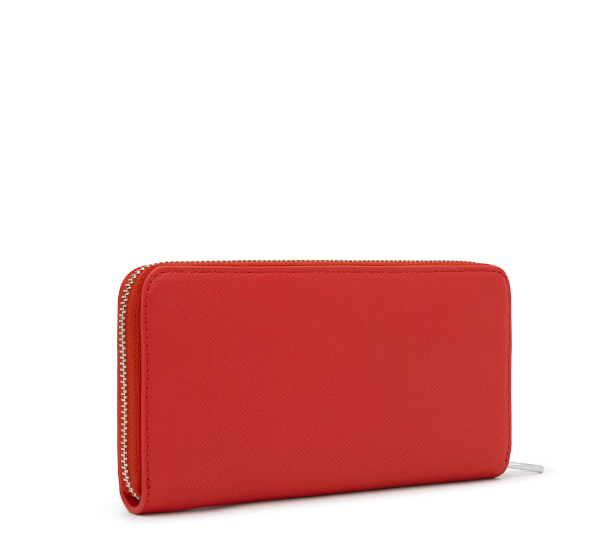 Billetera Mediana Audree Pockets de poliuretano en color rojo. Cierre de cremallera. En el interior cuenta con dos compartimentos abiertos para billetes, un compartimento con cremallera para monedas y ocho ranuras para tarjetas. Medidas (alto x ancho x fondo): 10 x 19,2 x 4 cm.