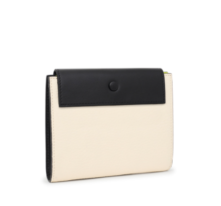 Billetera pequeña TOUS Empire de color beige y negro elaborada en piel, combinando Flotter con Napa. El cierre es con solapa y botón a presión. Cuenta con un bolsillo exterior con cremallera. En el interior hay 14 ranuras para tarjetas, un bolsillo abierto para billetes y 2 compartimentos abiertos para diferentes pertenencias.