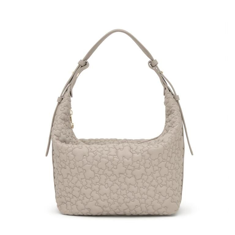 Bolso de hombro mediano TOUS Puffy bear de poliuretano en color topo. Cierre de cremallera. Bolsillo interior con cremallera. Asa de hombro ajustable.