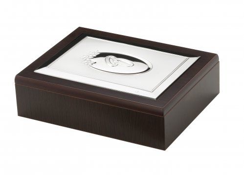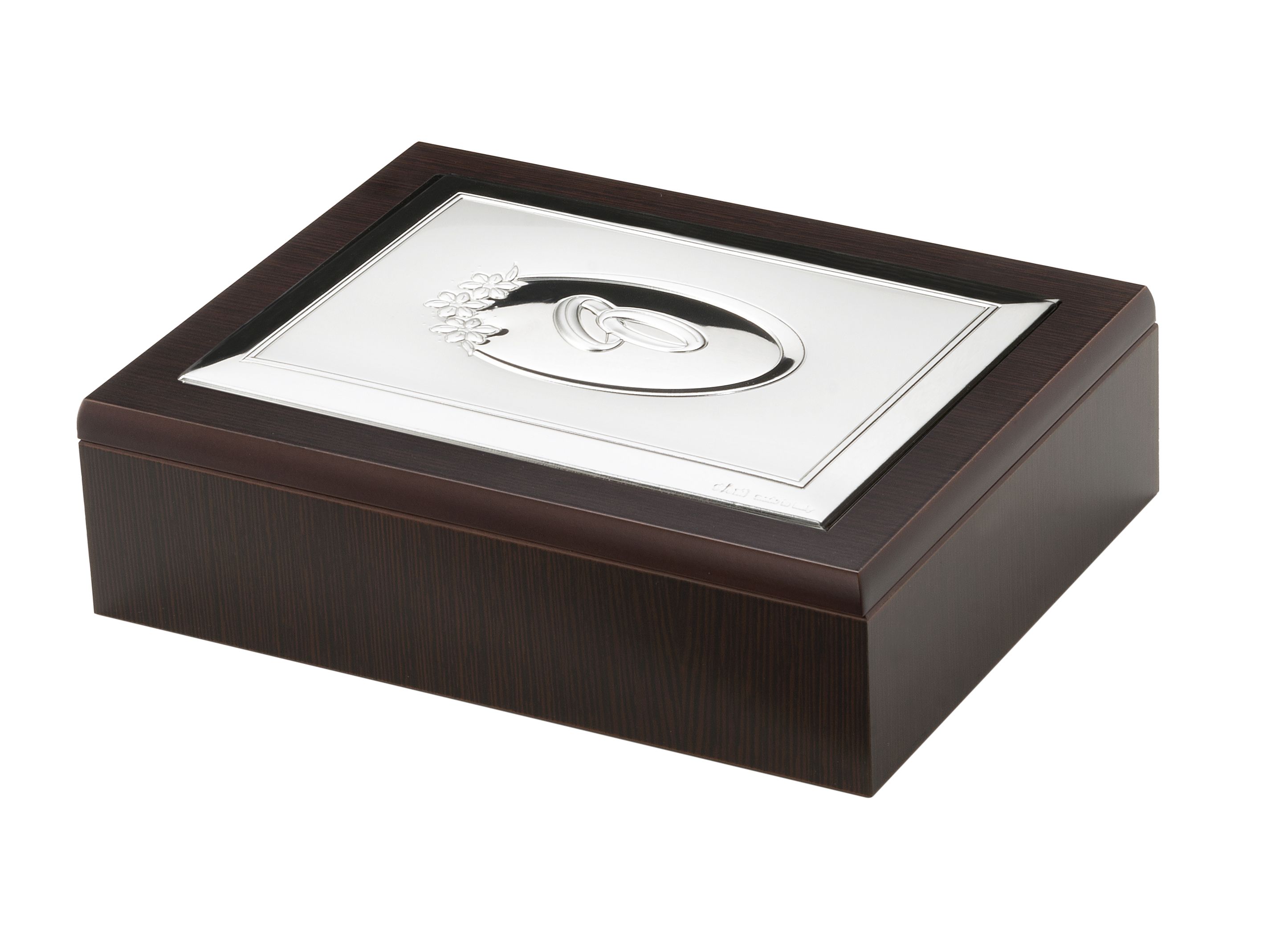 Caja de madera y plata bilaminada, barnizada e inalterable.