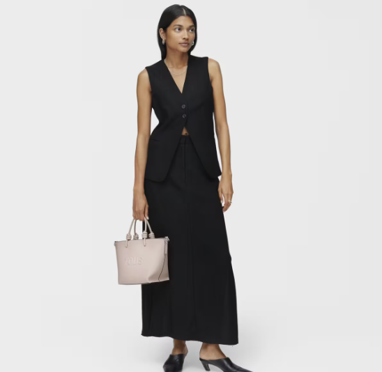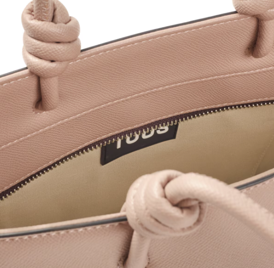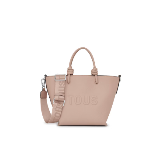 Bolso capazo pequeño TOUS La Rue New de piel sintética en color topo. Cierre de cremallera. Contiene un bolsillo interior abierto. Asa fija de mano y asa bandolera ajustable y extraíble.