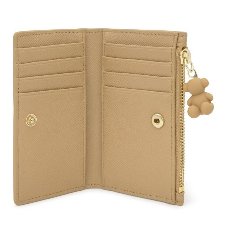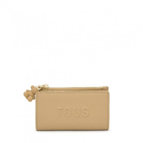 Cartera TOUS Brenda de poliuretano en color arena. Cierre con botón a presión. Tiene un compartimento para monedas con cierre de cremallera. En el interior cuenta con ocho ranuras para tarjetas y dos espacios para billetes.