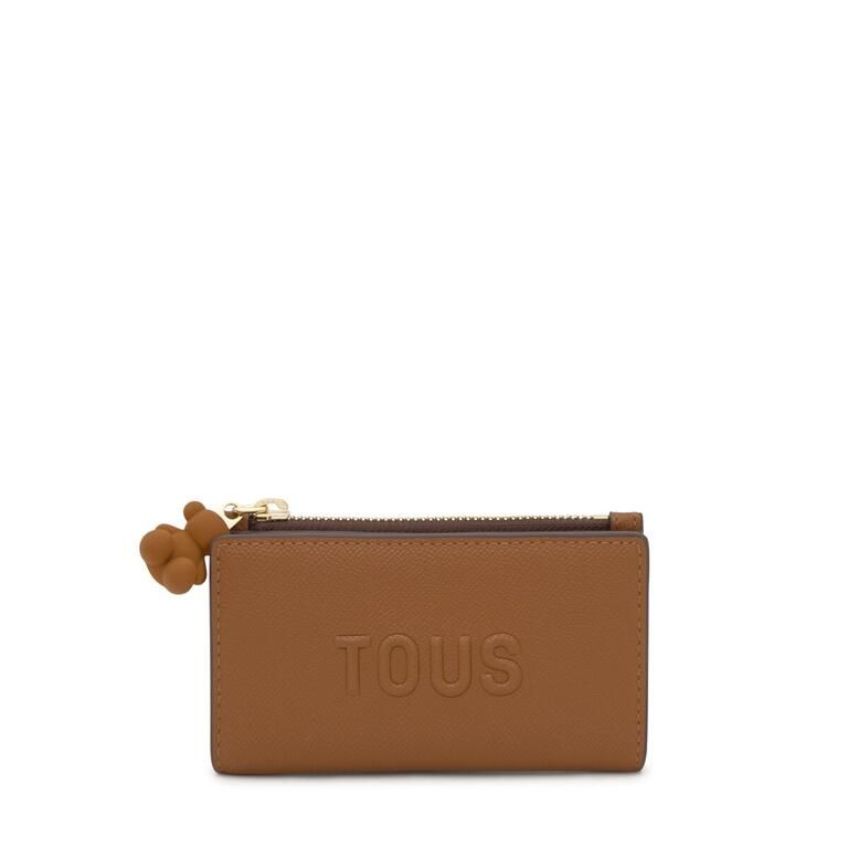 Cartera TOUS Brenda de poliuretano en color camel. Cierre con botón a presión. Tiene un compartimento para monedas con cierre de cremallera. En el interior cuenta con ocho ranuras para tarjetas y dos espacios para billetes.