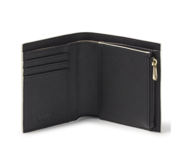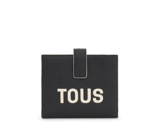Cartera TOUS Halfmoon de poliuretano en color negro. Cierre de botón a presión. En el interior cuenta con seis ranuras para tarjetas, un bolsillo con botón para monedas y un compartimento para billetes.