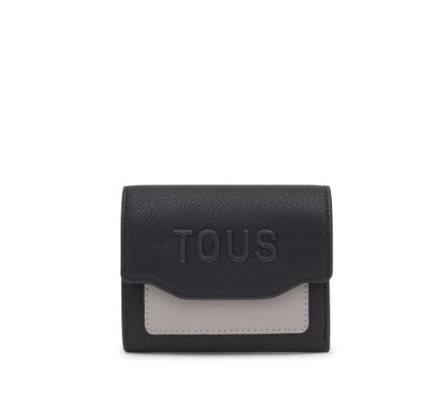 Cartera Audree Saffiano de poliuretano en color negro y gris. Cierre de botones a presión. En el interior cuenta con seis ranuras para tarjetas y un compartimento para billetes. Bolsillo para monedas con cierre de cremallera. Medidas (alto x ancho x fondo): 10 x 12 x 3 cm