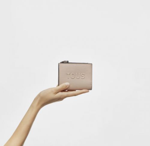 Cartera TOUS La Rue New de piel sintética en color topo. Cierre con botón a presión. Contiene seis ranuras para tarjetas, un compartimento para billetes y un bolsillo con cremallera para monedas.