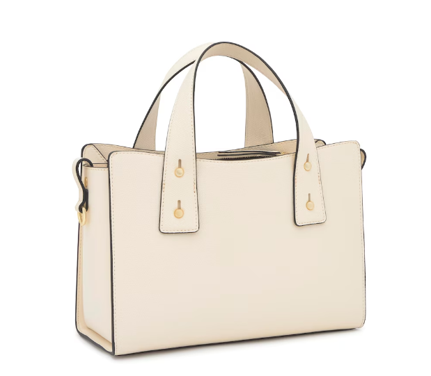 Bolso city mediano Back to basics de poliuretano en color beige. Cierre con mosquetón central. Bolsillo interior con cremallera. Asa fija de hombro. Medidas (alto x ancho x fondo): 15 x 33 x  20 cm.