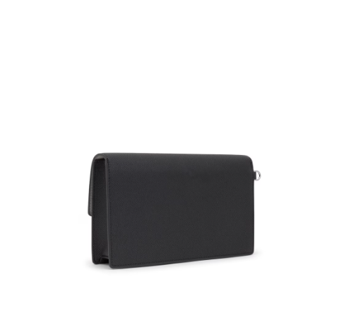 Bolsa clutch Audree Saffiano de poliuretano en color negro y gris. Cierre con botones a presión. En el interior cuenta con cuatro ranuras para tarjetas. Bolsillo exterior abierto. Asa de mano extraíble.