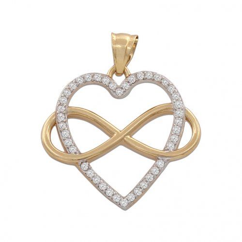 Colgante corazón/infinito fabricado en oro de 18 kilates (blanco/amarillo) y circonitas.