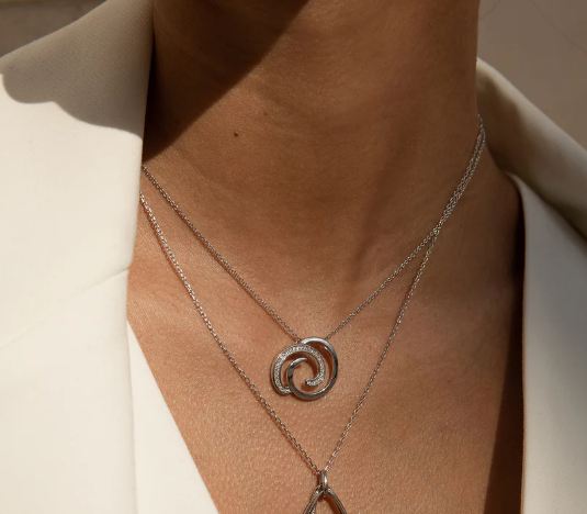 Colgante brillante de plata diseño caracol con circonitas. Una pieza perfecta para llevarla con tus outfits favoritos. Formado por dos círculos formando una forma de caracol de plata lisa y circonitas. Combínalo con los pendientes y anillo a juego. ¡No podrá faltar en tu joyero!