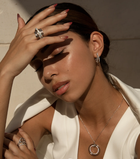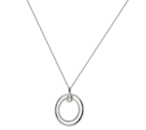 Colgante en Plata de Ley 925 ml. brillante con circonitas diseño doble círculo.