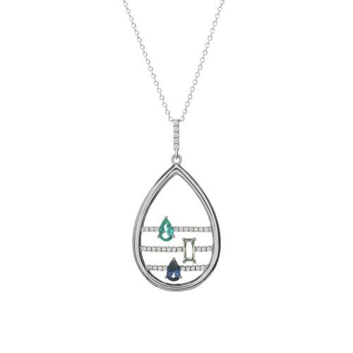 COLLAR DE PLATA CON COLGANTE LÁGRIMA Y CIRCONITAS MULTICOLOR Lineargent