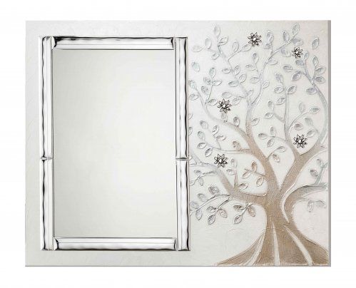 Cuadro madera árbol de la vida con espejo enmarcado en plata bilaminada, barnizada e inalterable.