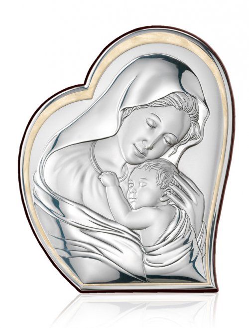 Icono Virgen con Niño fabricado en plata bilaminada.