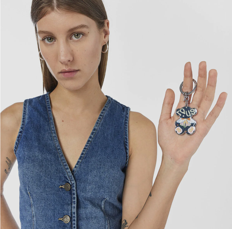 Llavero oso TOUS Modlin con estampado en color azul marino.