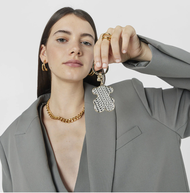 Llavero oso TOUS Vera con estampado en color negro y blanco.