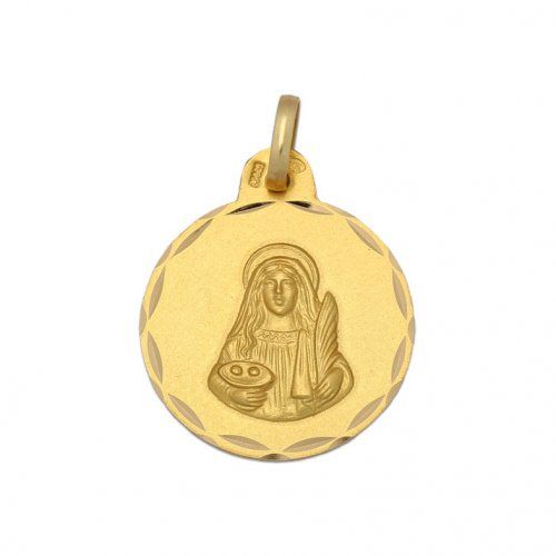 Medalla Santa Lucía fabricada en oro de 18 kilates.