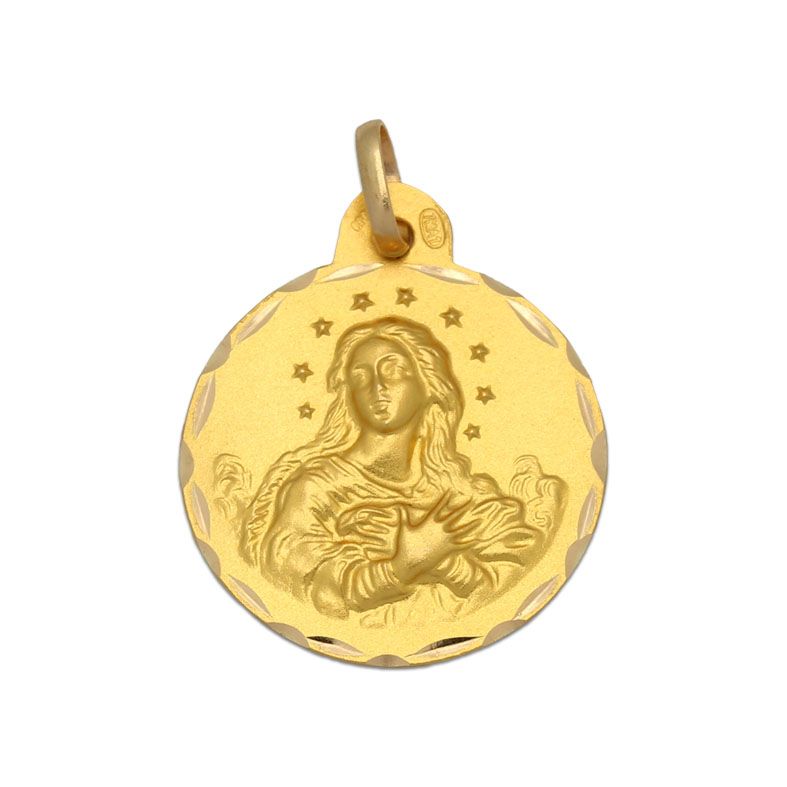 Medalla Virgen Inmaculada fabricada en oro de 18 kilates.