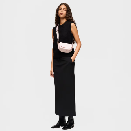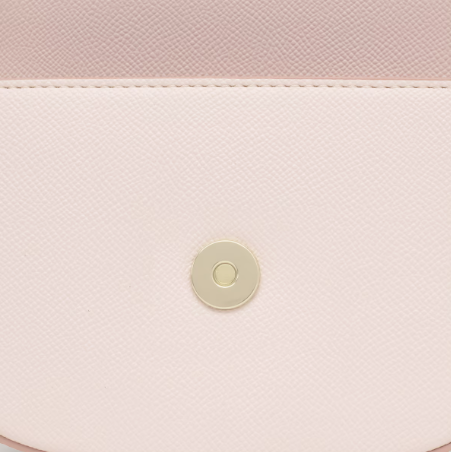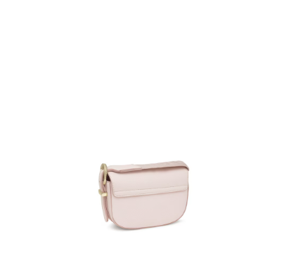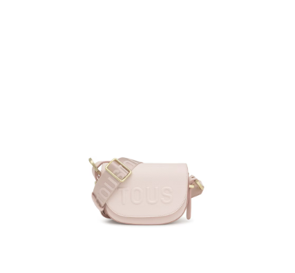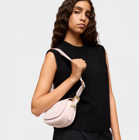 Bolso minibandolera medialuna TOUS Brenda de poliuretano en color rosa claro. Cierre de botón magnético. Asa bandolera ajustable. Medidas (alto x ancho x fondo): 13 x 22 x 7 cm.