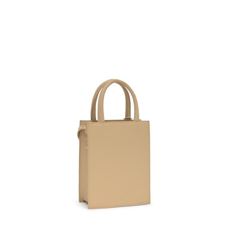 Minibolso Pop TOUS Brenda de poliuretano en color arena. Cierre con botón magnético. Asas fijas de mano y asa bandolera ajustable y desmontable. Incorpora un bonito detalle de oso colgante.