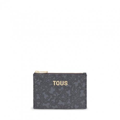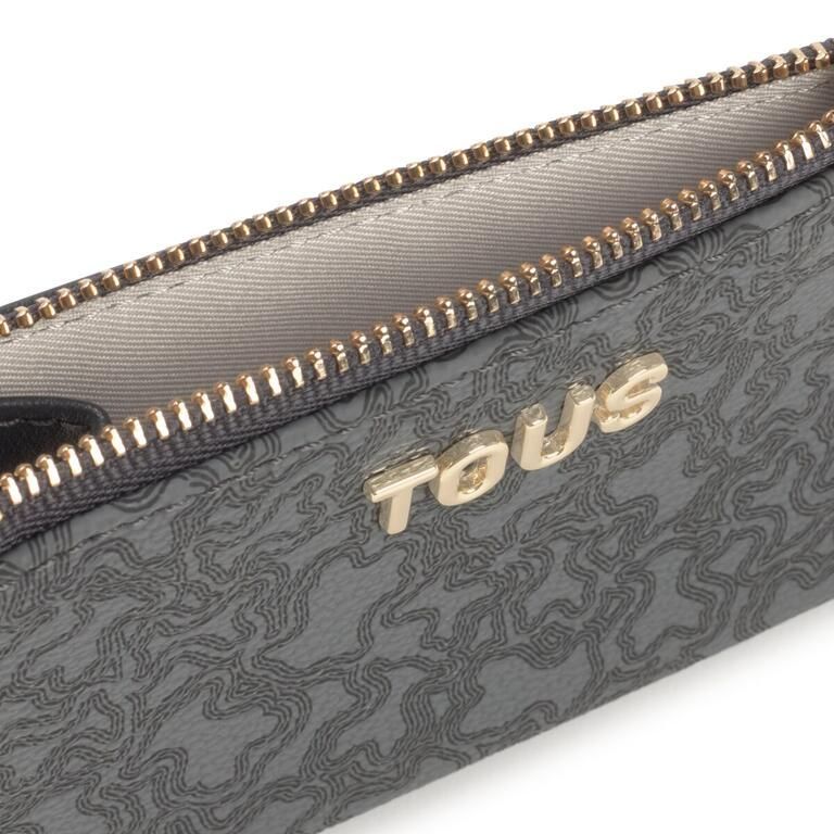 Monedero tarjetero Kaos Mini Lines de lona con detalles de piel sintética en color gris oscuro. Compartimento especial para monedas con cierre de cremallera. En la parte trasera cuenta con tres ranuras para tarjetas, una de ellas transparente.