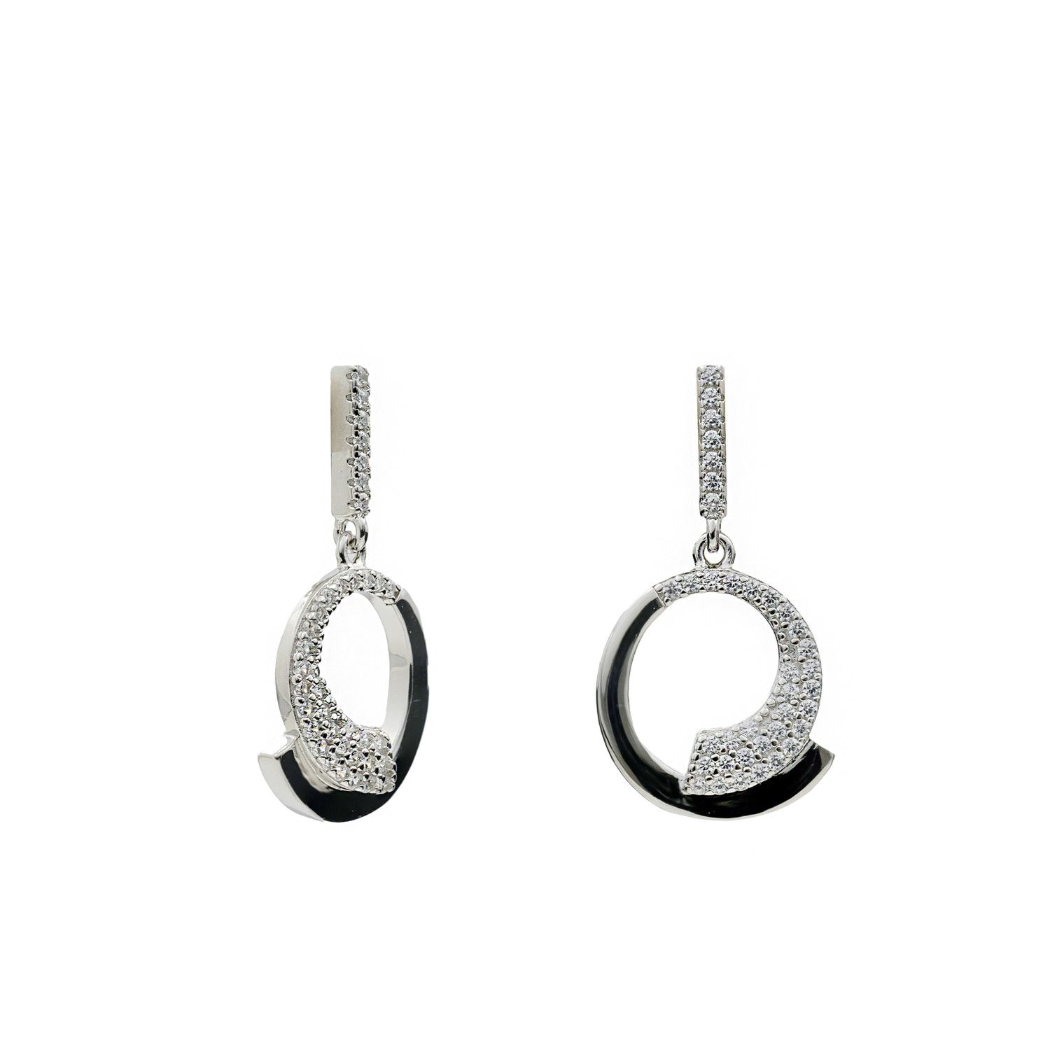 Elegantes pendientes colgantes de plata con diseño circular y circonitas brillantes, un accesorio sofisticado y versátil que aporta estilo, luminosidad y distinción a tu look en cualquier ocasión.