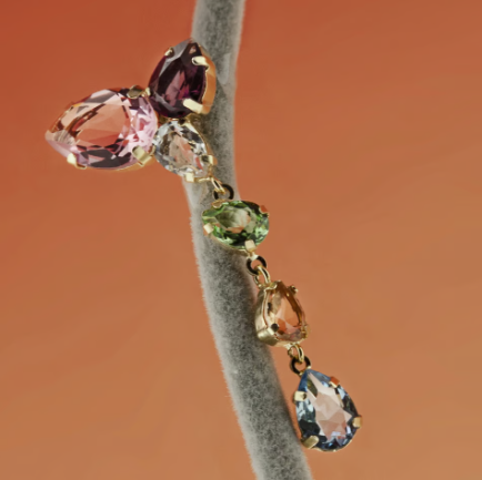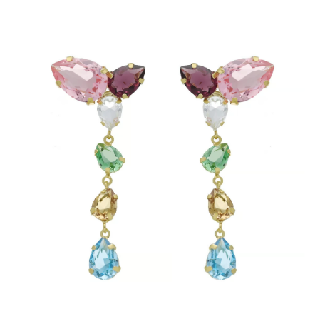 Pendientes largos 2,4x5,3 cm de Plata de Ley bañados en Oro de 18kt de color multicolor en forma de lágrima que reflejan poder y elegancia en fiestas, bodas y eventos de la colección Magnolia