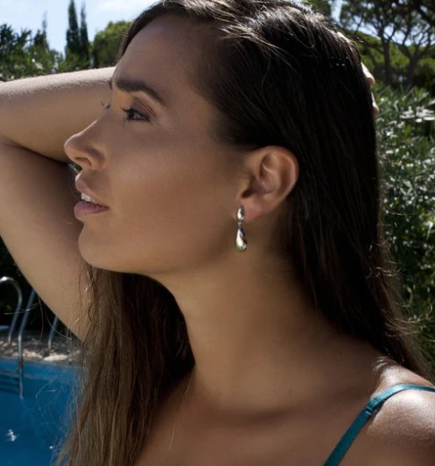 Pendientes largos de plata diseño doble lágrima. Pendientes de plata formados por dos piezas en forma de lágrima. Su diseño minimalista y elegante resalta por las suaves curvas de las lágrimas, aportando un toque sutil y sofisticado. Ideales para cualquier ocasión, estos pendientes combinan con facilidad y añaden un estilo moderno y refinado a tu look.