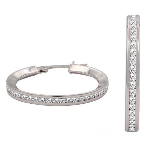 Aros de oro blanco de 18 kilates y circonitas. Terminación en brillo.