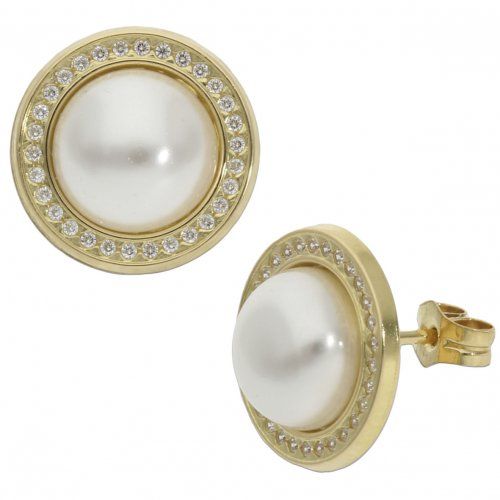 Pendientes de oro 18 kilates con perlas chinas de 8 mm. y cerco de circonitas.