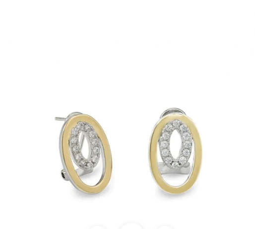 Pendientes Plata de Ley 925 ml. bicolor con baño de oro amarillo y circonitas.
