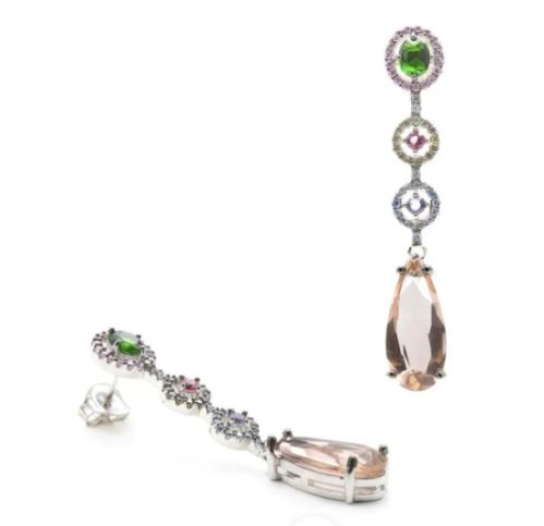 Pendientes Plata de Ley 925 ml. largos con circonitas y piedras de colores.