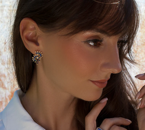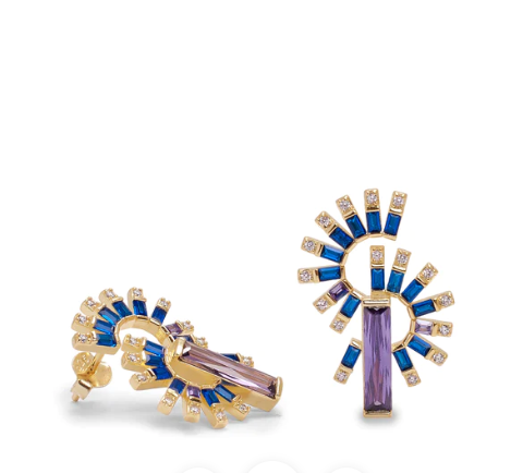 Pendientes Plata de Ley 925 ml. con baño de oro amarillo , diseño abanico con piedras de colores.