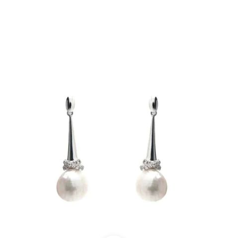Pendientes Plata de Ley 925 ml. con circonitas y perla, largos con movimiento