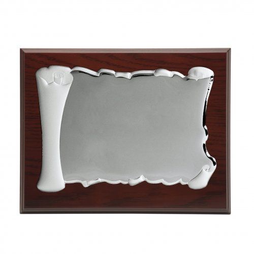 Placa homenaje fabricada en plata bilaminada, barnizada e inalterable.