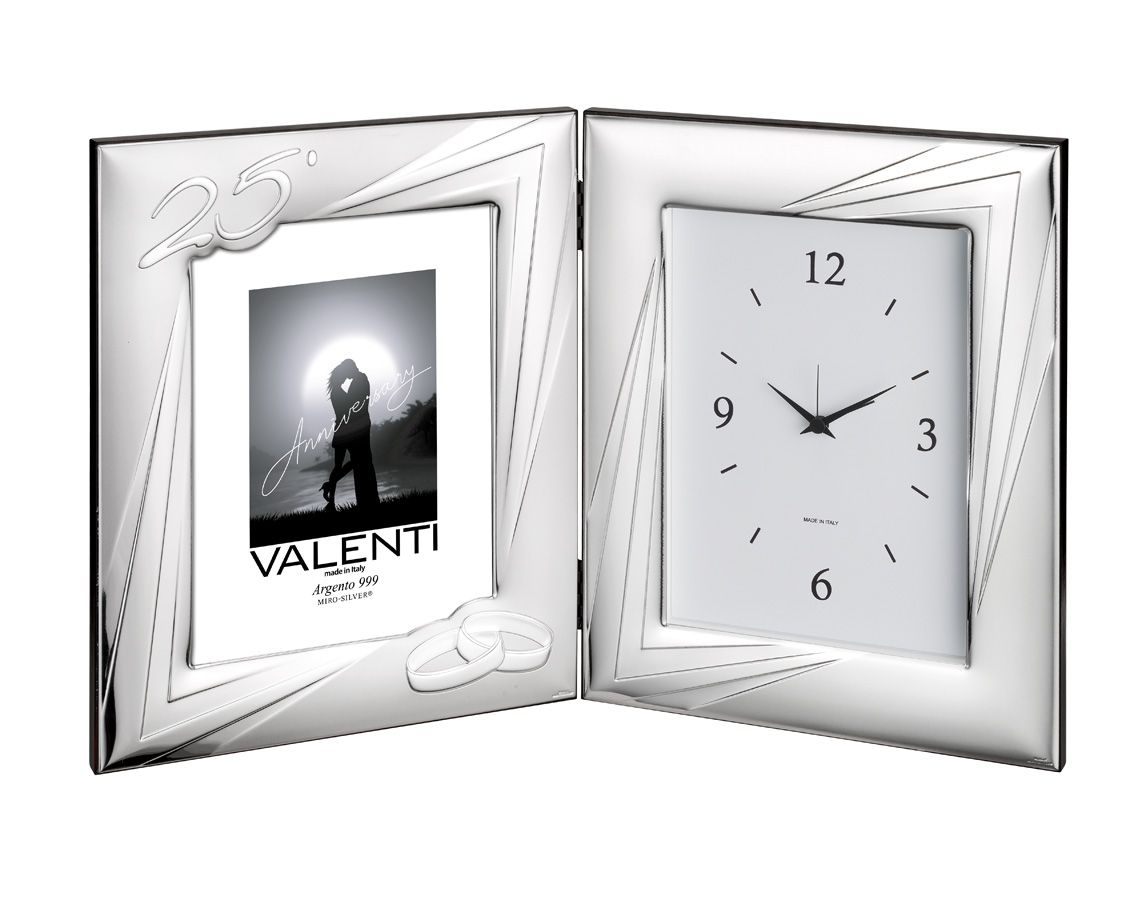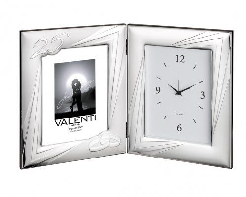 Porta fotos con reloj 25 Aniversario fabricado en plata bilaminada.