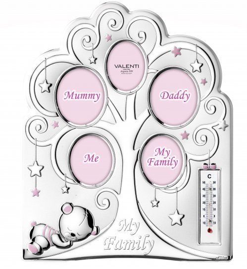 Porta fotos Mi Familia, con termómetro y musica baño de plata inalterable.