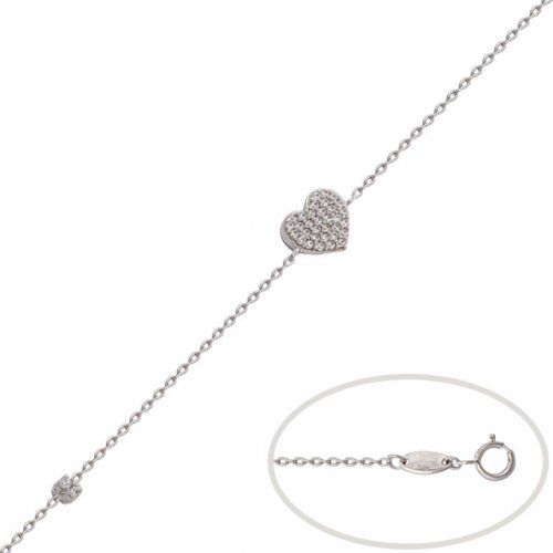 Pulsera con corazón fabricada en oro blanco de 18 kilates con circonitas. Incluye cadena forzada de 1 mm. de grosor.