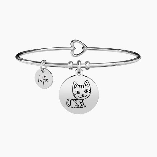 Pulsera de acero con colgante gato.