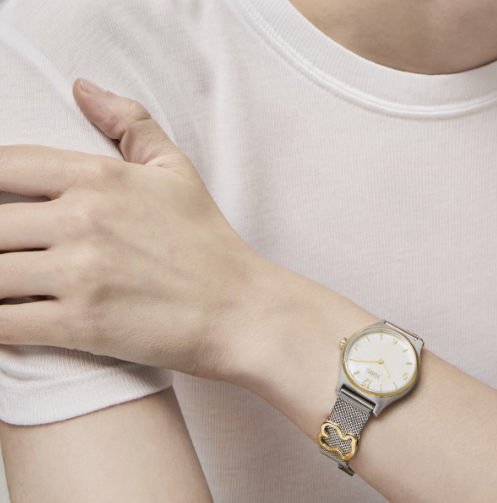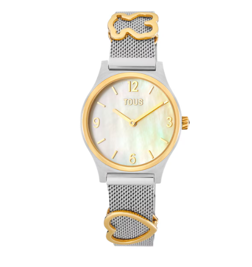 Reloj analógico con brazalete de acero SS, acero IPG dorado y esfera de nácar Epic Icon Mesh 3000136000
