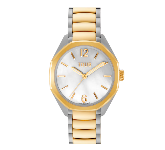 Reloj analógico con movimiento suizo, esfera de nácar y brazalete de de eslabones acero bicolor Tous Now